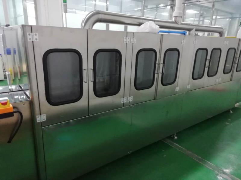 (3)刷洗后,電池進(jìn)入噴淋沖洗段,經(jīng)過一定的壓力噴洗將前面刷洗后的電池進(jìn)一步的清洗一下,以輔助后面的高壓噴淋漂洗更干凈。